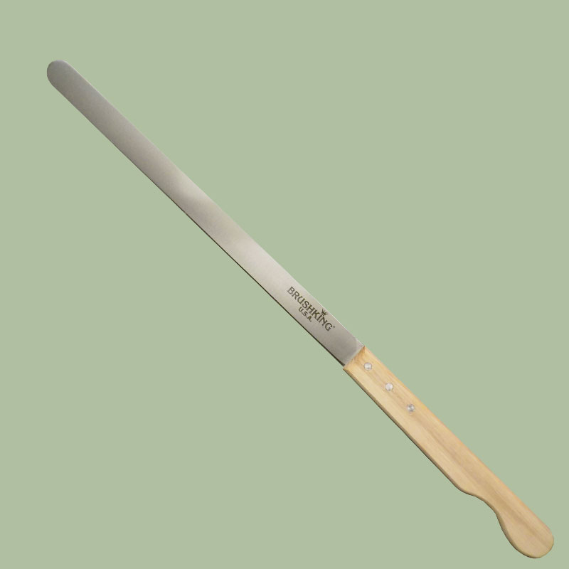 All BrushKing® shearing knives are crafted with durable quality German and USA stainless steel that provide a superior cutting edge without heaviness or rigidity. They have a comfortable grip and are designed to minimise wrist and forearm fatigue and allow for heavy weight shearing. Each knife is fitted with shrink tube, a strong band of material, which prevents the knife handle from splitting when shearing tough, seasoned wood limbs.