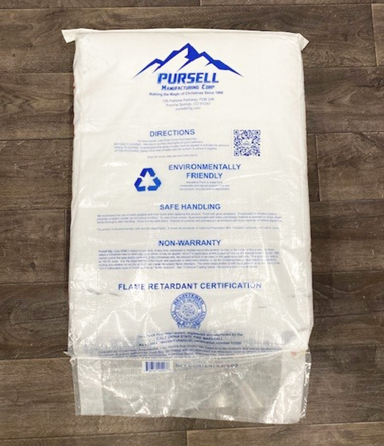 Our flocking is packaged in easy to handle, moisture barrier bags that stack and store easily. You can expect to average 3 – 6 flocked trees per bag, depending on application and size.